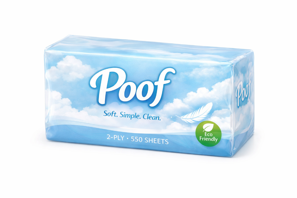 | Poof Simple Soft Pack | Soft, Simple, Clean. Eco-friendly facial tissues with 550 sheets. 2-ply for everyday comfort. | ![]() |